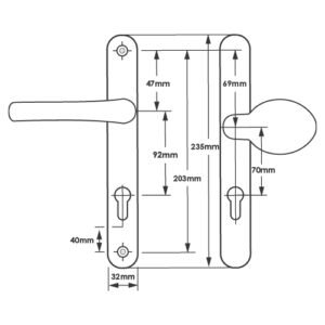 TSS Lever Lever UPVC Multipoint Door Handles - 92mm PZ - Sprung - 203mm Screw Centres - 232mm Backplate