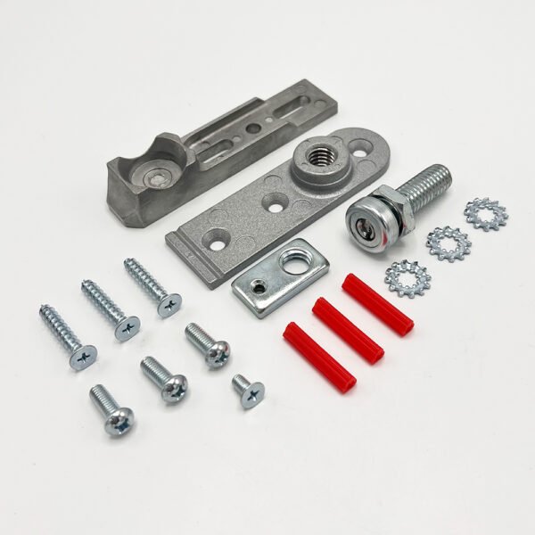 This bottom pivot assembly is an essential component of the TC-8800 concealed transom door closer system. It holds and supports the weight of the door and enables it to swing open and closed.