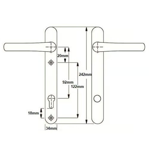 The distance between the fixing screws is 122mm with the bottom screw positioned 18mm below the euro profile cut-out.