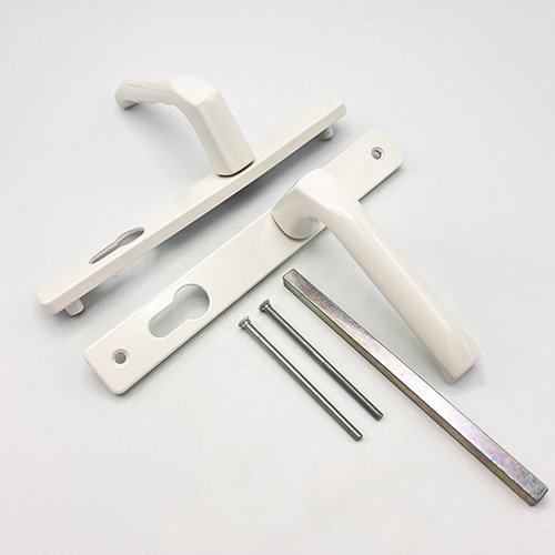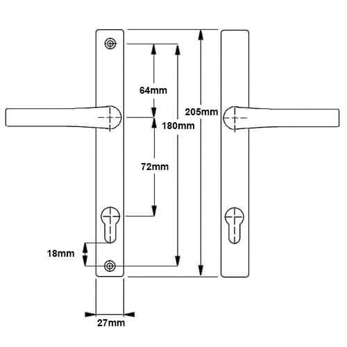 These Hoppe handles from the London range, which have unsprung 72pz internal & external levers, were commonly used on the Fuhr 3 part multipoint range. With a backplate size of 205mm x 28mm they are available in various finishes.They are not compatible with spring cassettes.