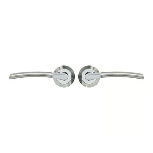 These modern lever on rose handles are ideal for domestic everyday use. With a curved, Satin Chrome/Chrome dual finish design and concealed screw fixings, these handles come supplied with all you need to fit them.