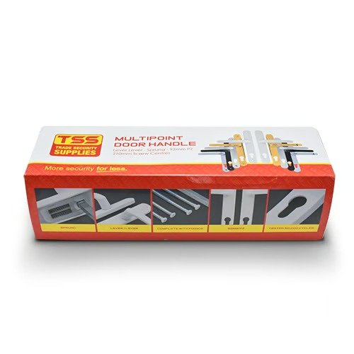 The TSS lever/lever multipoint door handle is a high-quality multipoint door handle that is available in a range of finishes including white, black, polished chrome, silver and polished brass. This handle has a backplate measuring 242mm and screw centres measuring 210mm. It is a durable and reliable handle, The handles have undergonecycle testing of over 50,000 operations. The polished chrome, silver and polished brass finish has undergone salt spray testing for over 240 hours. This handle is compatible with most 92mmPZ multipoint locks. They are supplied as a pair complete with fixings consisting of spindle & 2 colour coordinated screws.