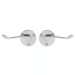 These TSS scroll handles on a round rose are face fixed and sprung. Availalable in Brass and Chrome. Supplied with Fixings and Spindle.