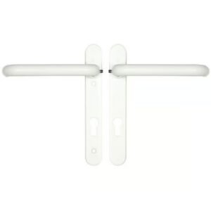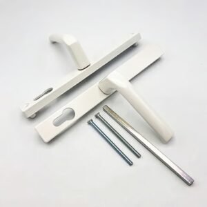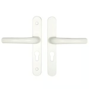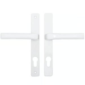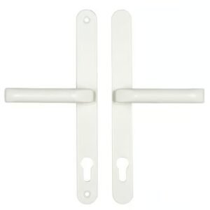 These Hoppe handles from the London range have unsprung 70pz internal & external levers. With a backplate size of 235mm x 27mm they are commonly used with GU Ferco multipoint locks with a 7mm follower. These handles are not compatible with spring cassettes.The distance between the fixing screws is 215mm.